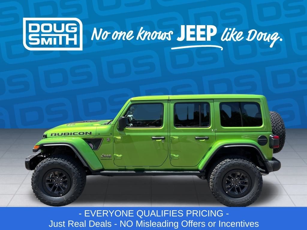 Mojito Clearcoat 2025 Jeep Wrangler Rubicon 392 4WD 8-Speed Automatic SRT HEMI 6.4L V8 MDS - Sale Price Includes: $1,500 Trade-In Allowance Incentive Program for customers that trade in a 2015 or newer passenger vehicle with 100,000 miles or less. - Offer Exp. 01/31/2026 - See Doug Smith CDJR for full details. - Advertised Price reflects a $1,500 Financing Discount. To qualify for this discount, customer must secure credit approval and finance with a dealership lender. Cash purchases or outside financing will void the discount, increasing the final price by $1,500. Exp. 01/31/2026 - See Doug Smith CDJR for full details.