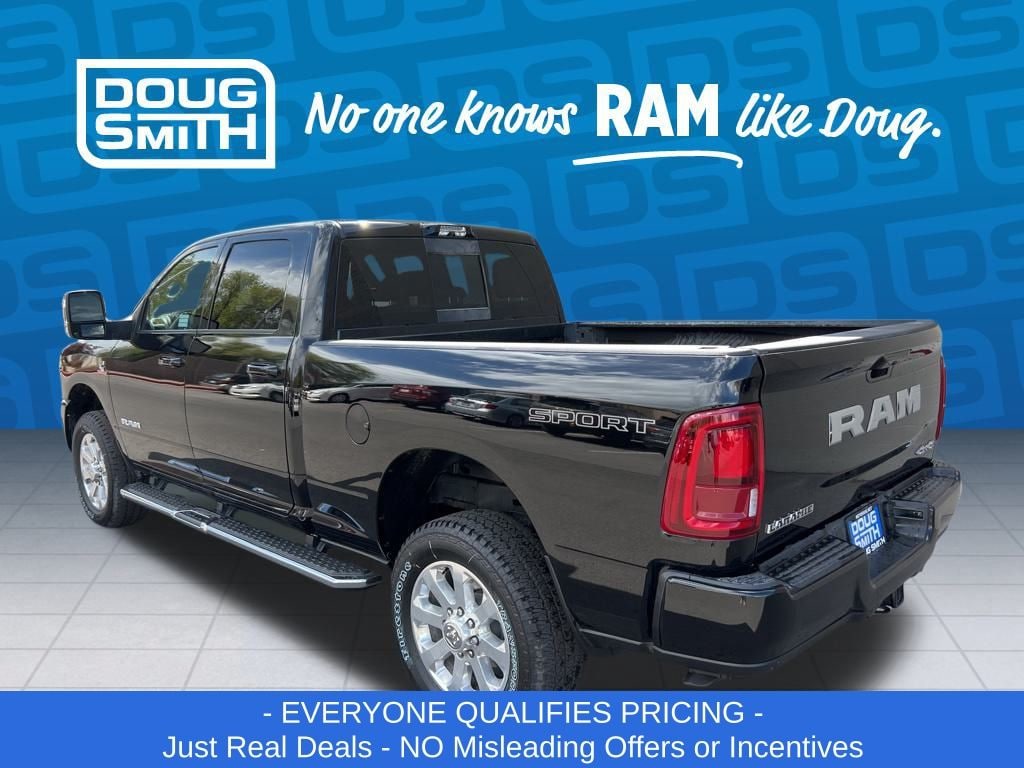 Diamond Black Crystal Pearlcoat 2025 Ram 2500 Laramie 4WD 8-Speed Automatic 6.7L I6 Price includes: $2000 - 2025 National Bonus Cash . Exp. 03/02/2026 - Advertised Price reflects a $1,500 Financing Discount. To qualify for this discount, customer must secure credit approval and finance with a dealership lender. Cash purchases or outside financing will void the discount, increasing the final price by $1,500. Exp. 02/28/2026 - See Doug Smith CDJR for full details. - Sale Price Includes: $1,500 Trade-In Allowance Incentive Program for customers that trade in a 2015 or newer passenger vehicle with 100,000 miles or less. - Offer Exp. 02/28/2026 - See Doug Smith CDJR for full details.