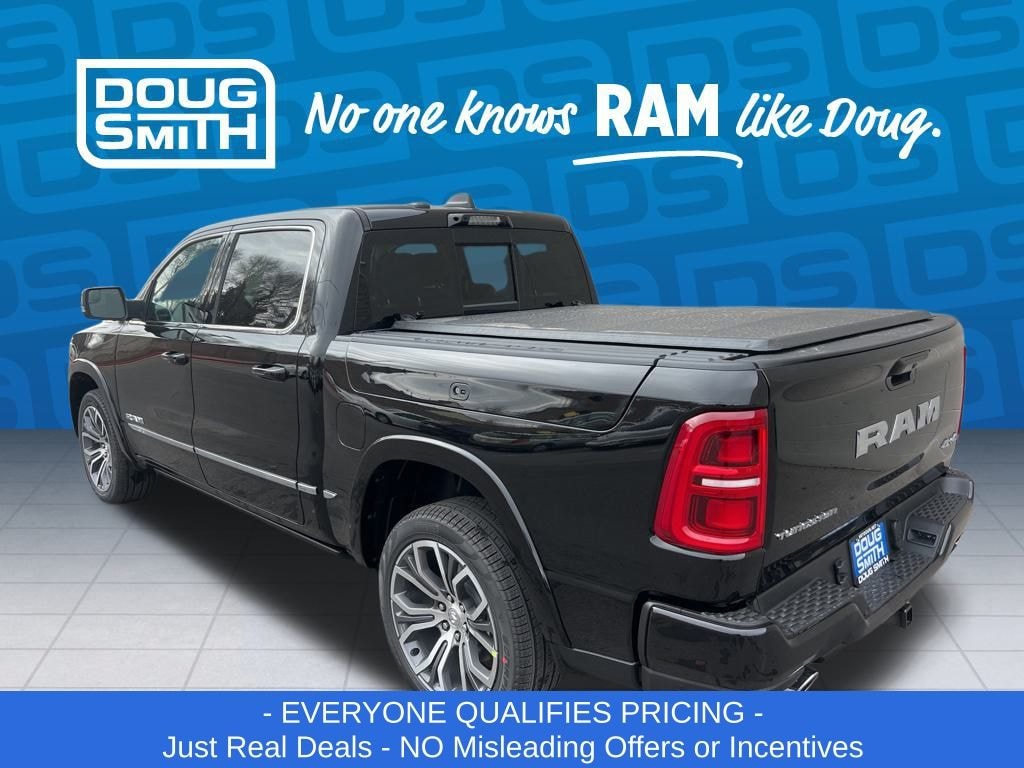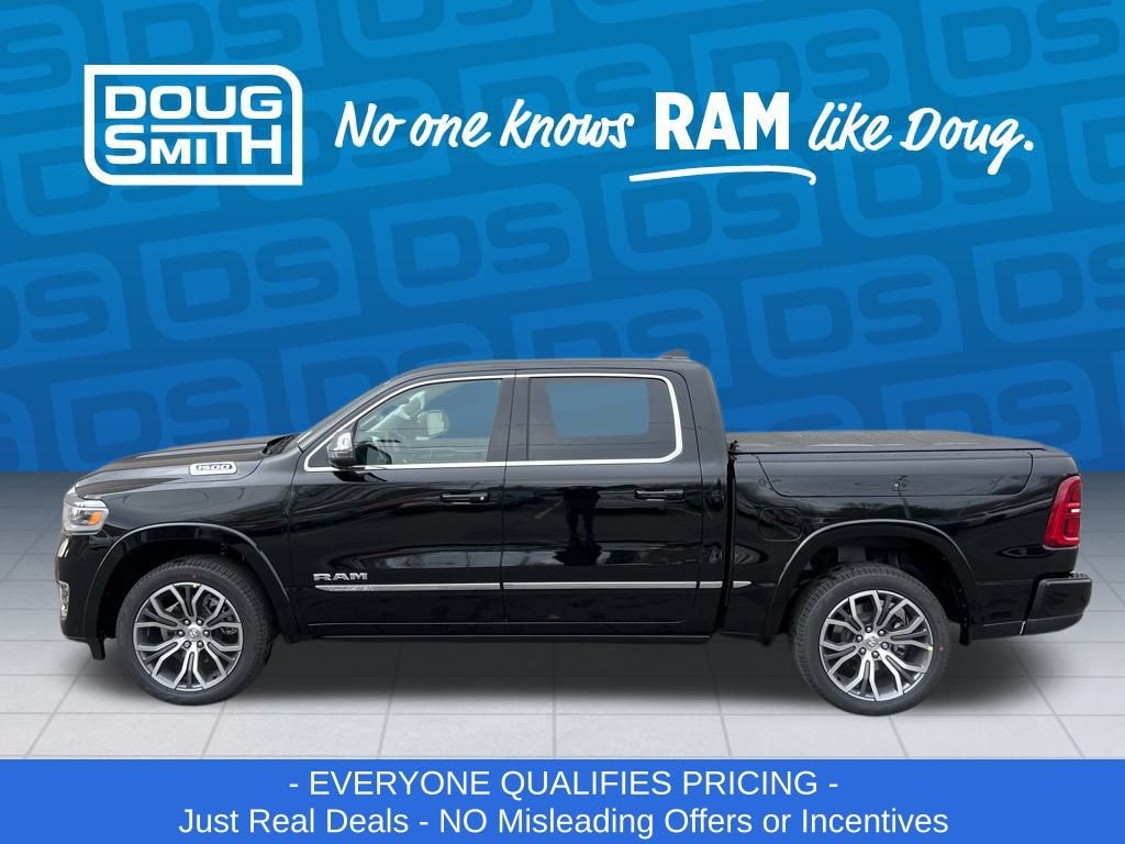 Diamond Black Crystal Pearlcoat 2026 Ram 1500 Tungsten 4WD 8-Speed Automatic 3.0L I6 - Sale Price Includes: $1,500 Trade-In Allowance Incentive Program for customers that trade in a 2015 or newer passenger vehicle with 100,000 miles or less. - Offer Exp. 01/31/2026 - See Doug Smith CDJR for full details. - Advertised Price reflects a $1,500 Financing Discount. To qualify for this discount, customer must secure credit approval and finance with a dealership lender. Cash purchases or outside financing will void the discount, increasing the final price by $1,500. Exp. 01/31/2026 - See Doug Smith CDJR for full details.