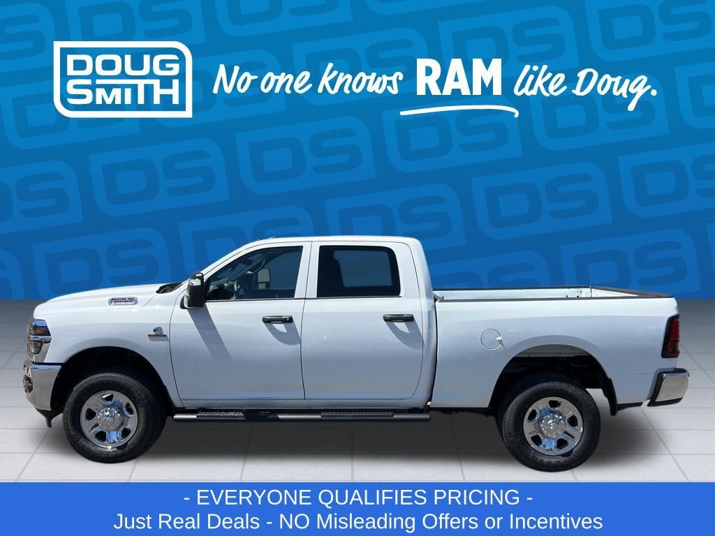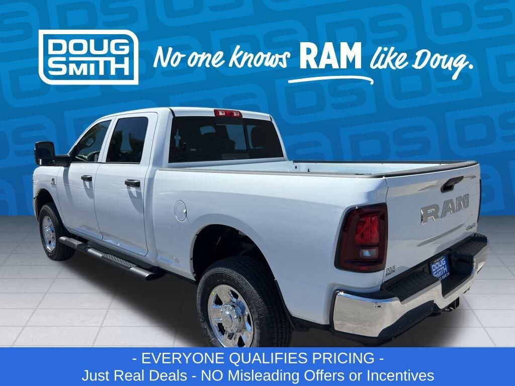 Bright White Clearcoat 2026 Ram 2500 Tradesman 4WD 8-Speed Automatic 6.7L I6 - Sale Price Includes: $1,500 Trade-In Allowance Incentive Program for customers that trade in a 2015 or newer passenger vehicle with 100,000 miles or less. - Offer Exp. 01/31/2026 - See Doug Smith CDJR for full details. - Advertised Price reflects a $1,500 Financing Discount. To qualify for this discount, customer must secure credit approval and finance with a dealership lender. Cash purchases or outside financing will void the discount, increasing the final price by $1,500. Exp. 01/31/2026 - See Doug Smith CDJR for full details.